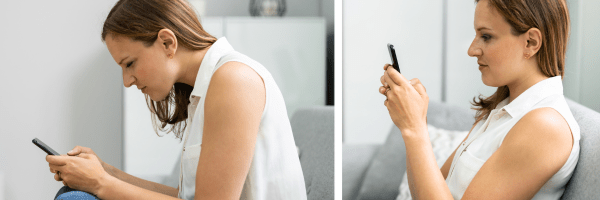 Veel mensen laten hun hoofd naar voren hangen of houden hun telefoon tussen schouder en oor geklemd. Deze houdingen belasten de nek- en schouderspieren enorm, wat op de lange termijn kan leiden tot chronische pijn en ongemakken. Een slappe houding kan ook de ademhaling beïnvloeden en vermoeidheid veroorzaken.